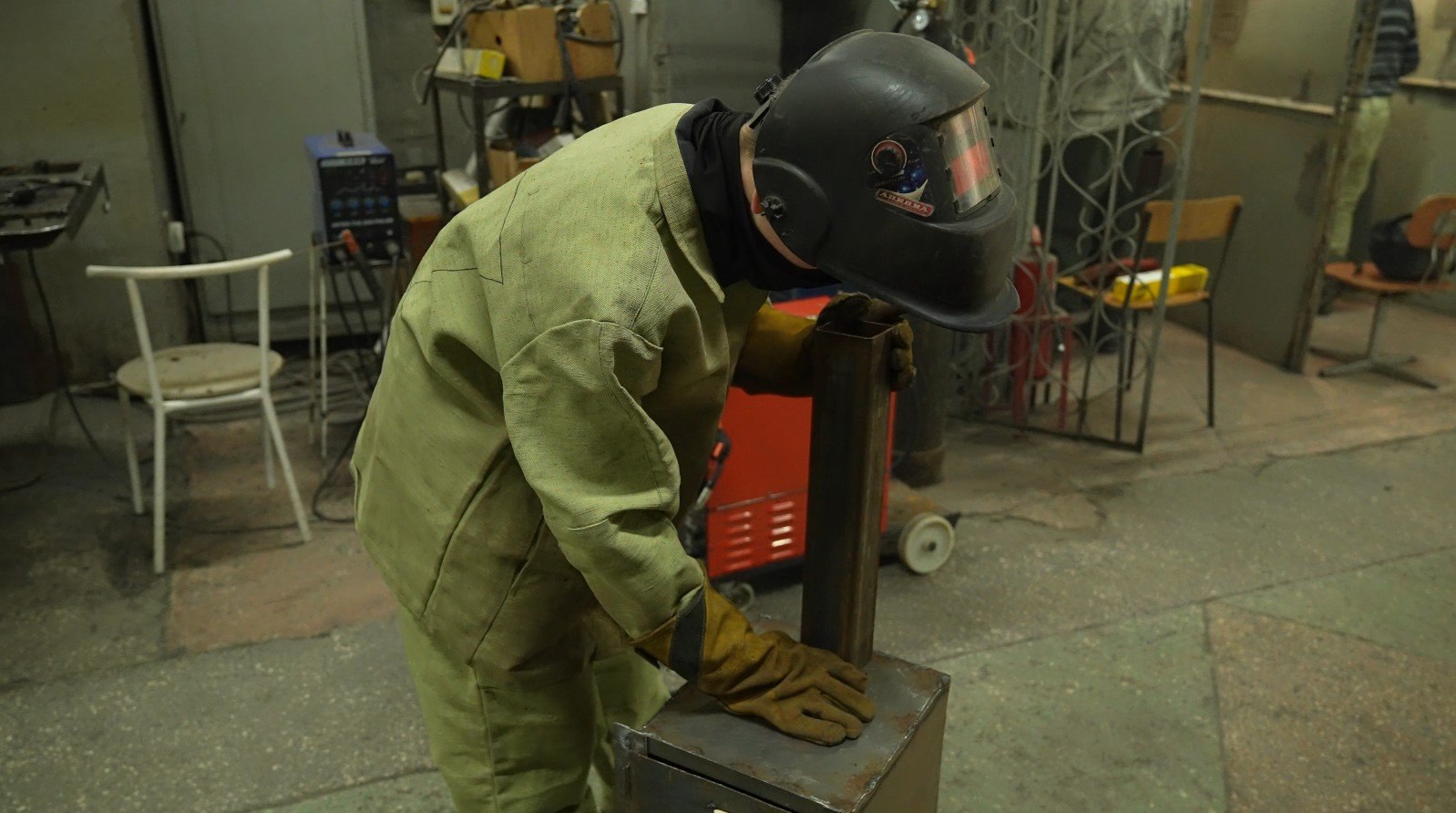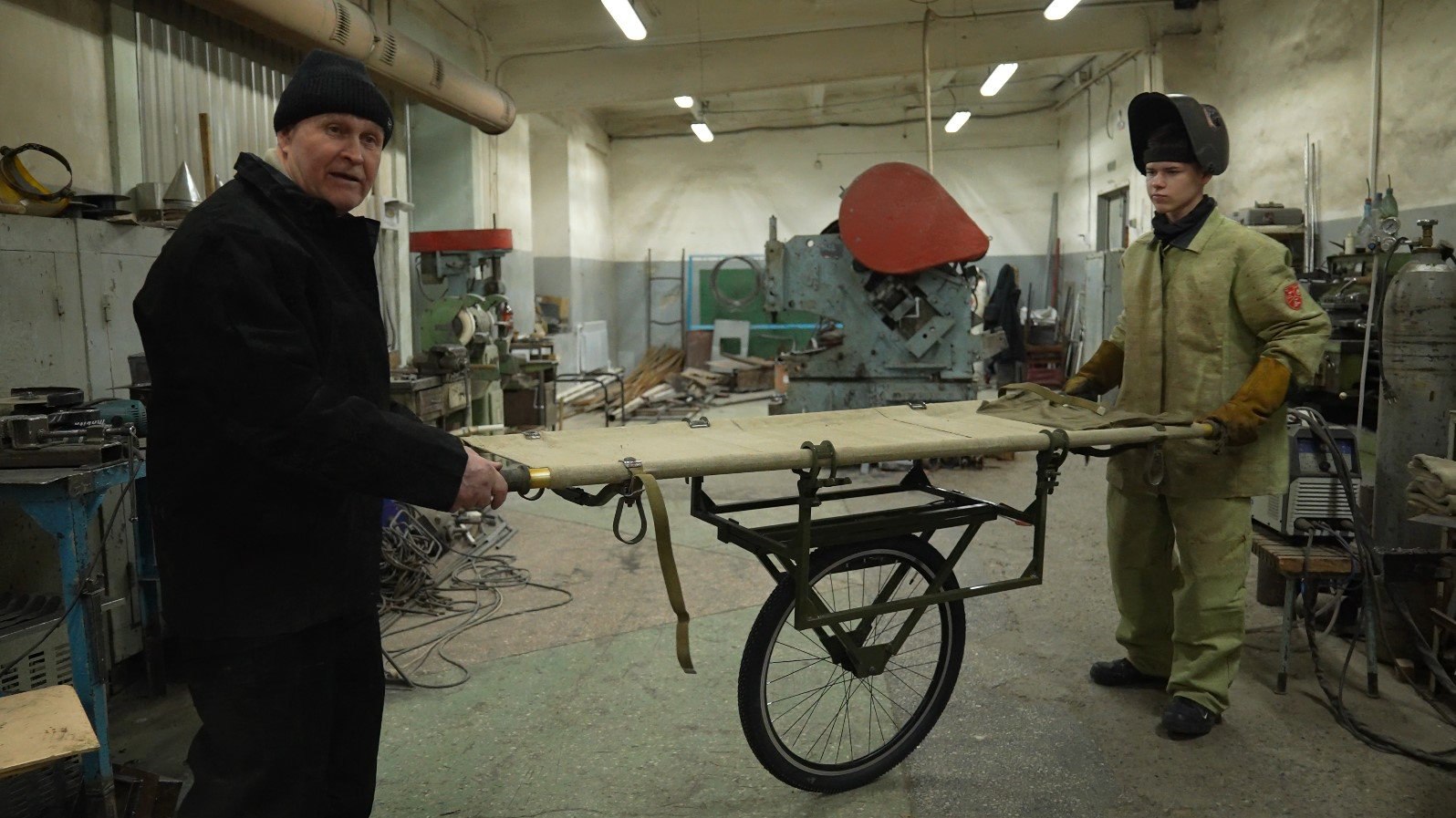 В общежитии учреждения рамка для плетения сетей установлена в общем холле. Любой студент может подойти и уделить свободное время полезному делу. В учебной мастерской сварки работа над буржуйками тоже ведется в свободное от основной учебы время. Здесь же освоили выпуск эвакуационных тележек-трансформеров.