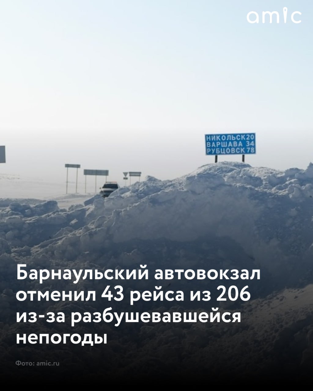 Автовокзал в Барнауле отменил 43 рейса из 206 из-за ухудшения погодных условий