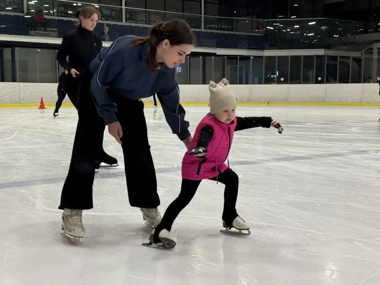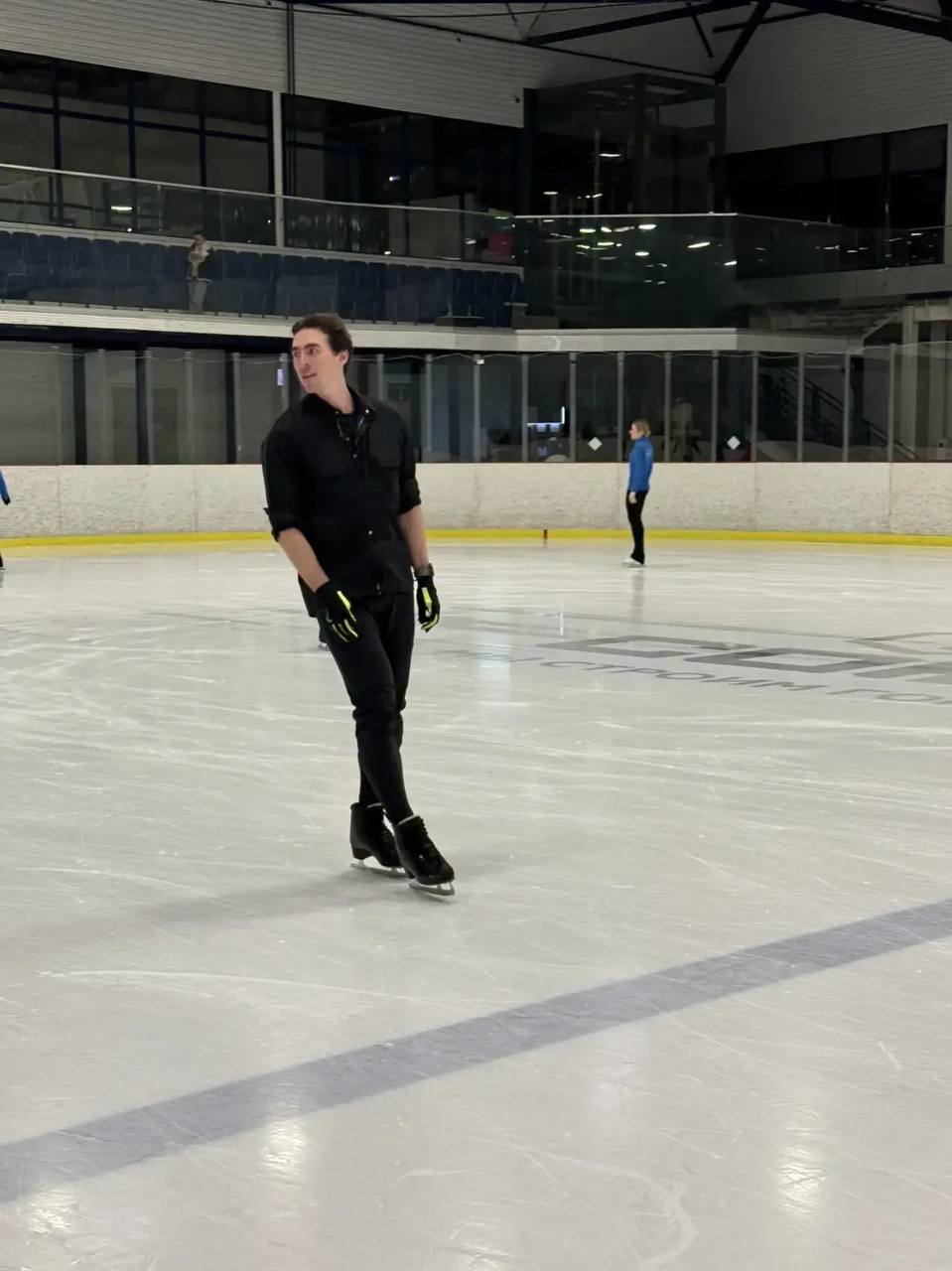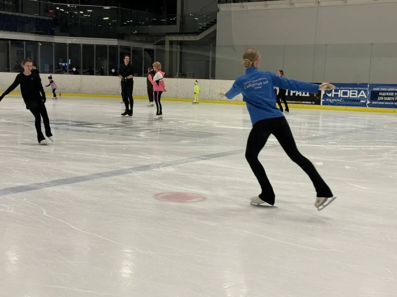 После беседы участники провели совместную разминку, а затем Шубенков вышел на лёд вместе с фигуристами клуба.
