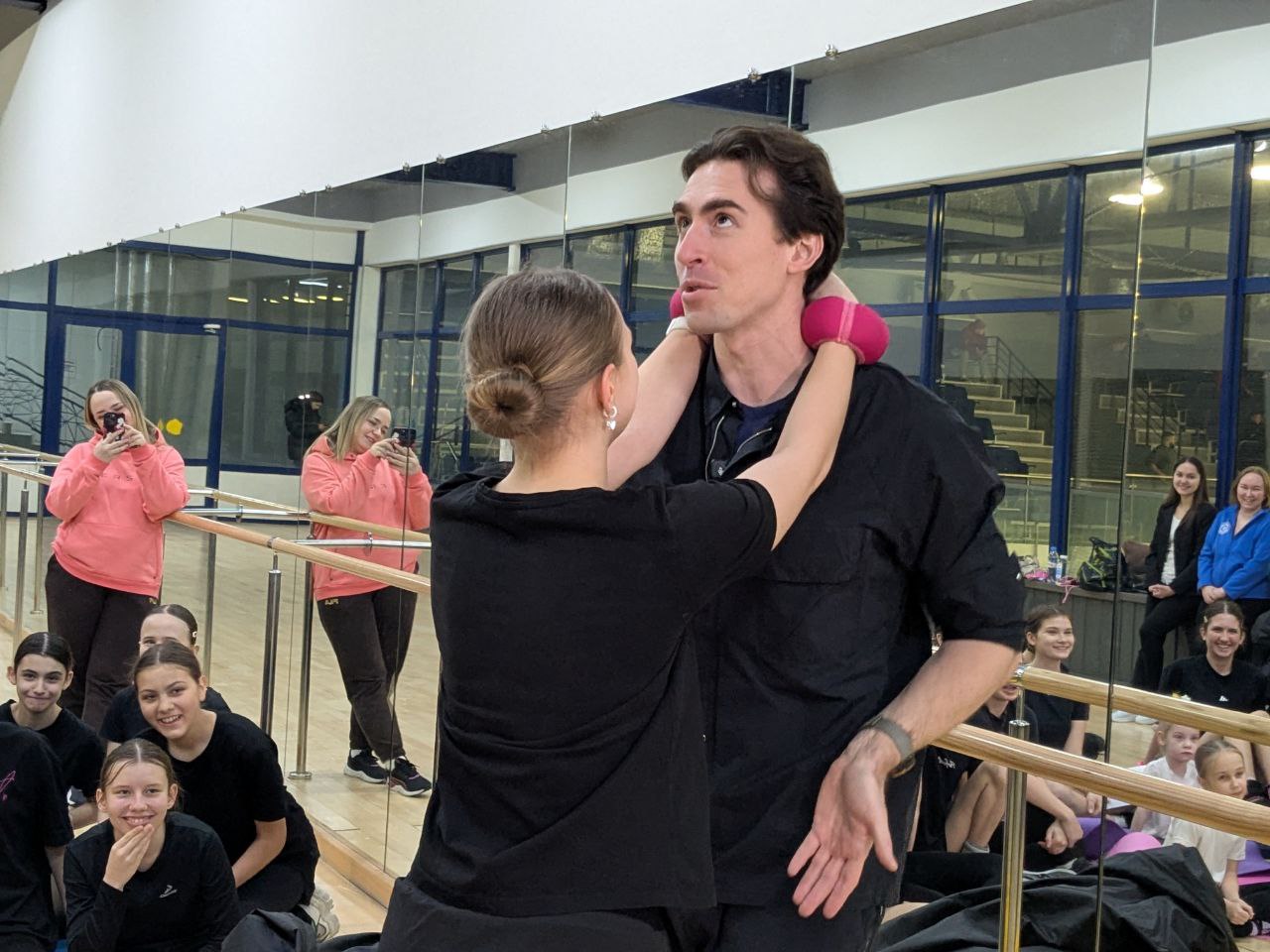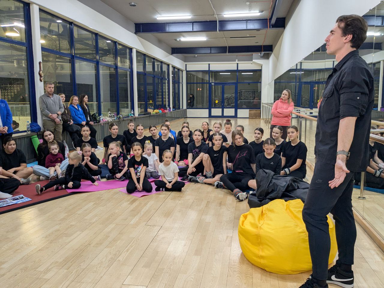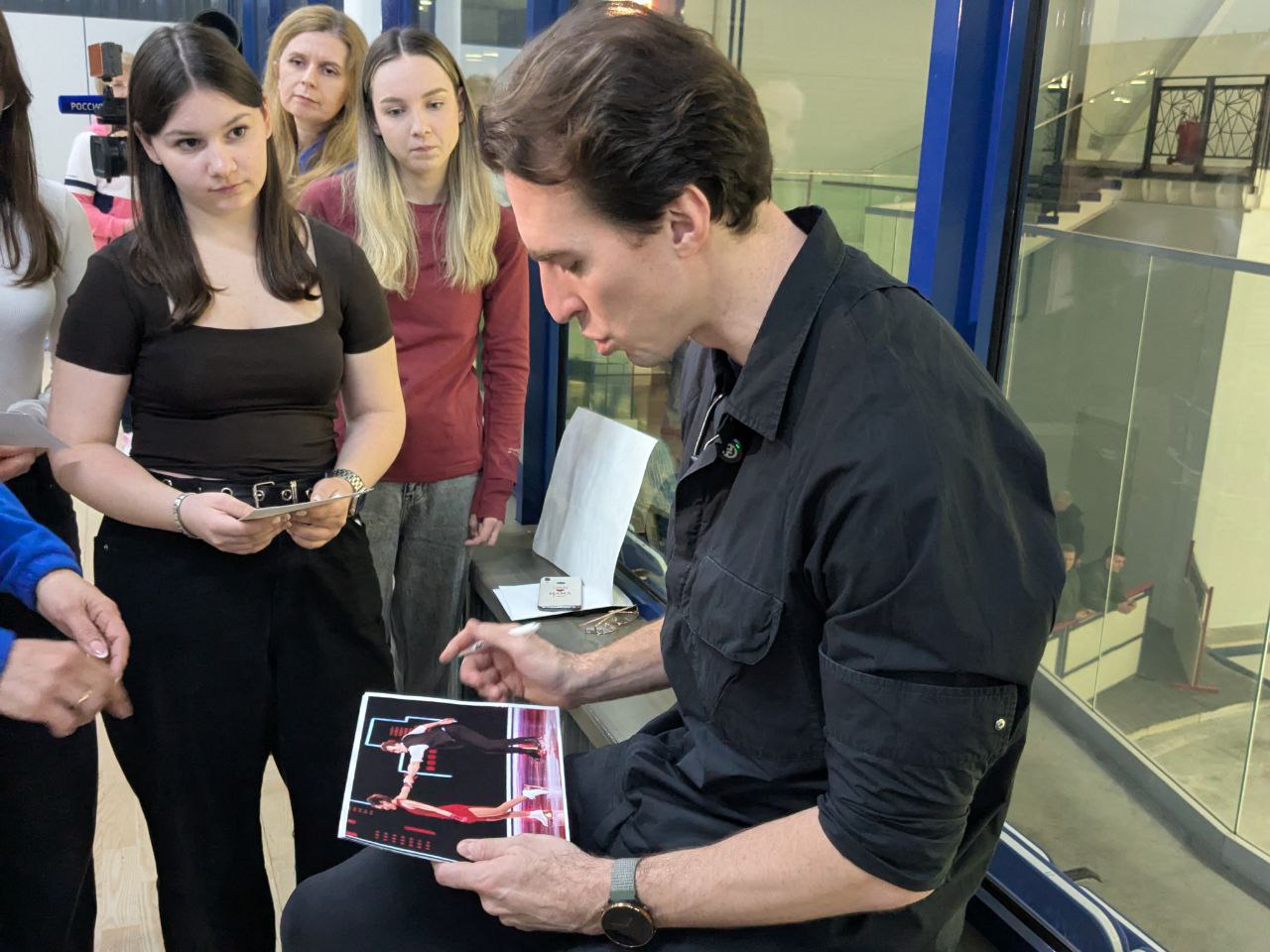 На встрече Сергей рассказал о своих тренировках на льду, о подготовке и съемке программ «Ледниковый период», а также вышел на лед и провел тренировку.