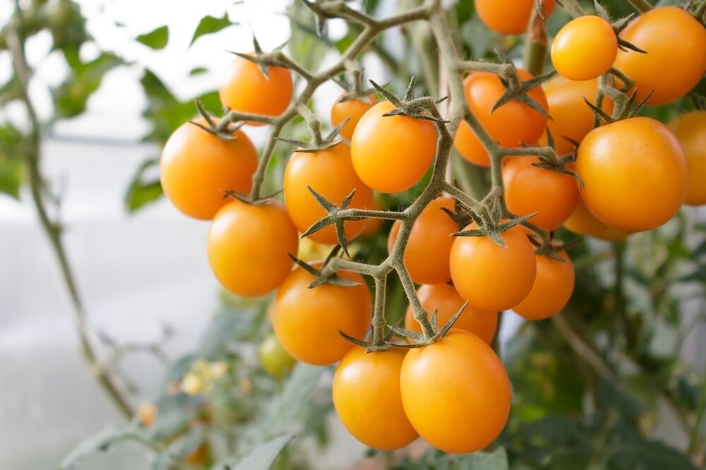 Сорта желтых и оранжевых томатов тоже впечатляют своим разнообразием. От раннеспелых и среднеспелых, до поздних — выбор огромен. Есть высокие индетерминантные сорта, компактные детерминантные, а также миниатюрные штамбовые. Также можно найти мясистые биф-томаты, сладкие черри и плоды, идеальные для консервирования.