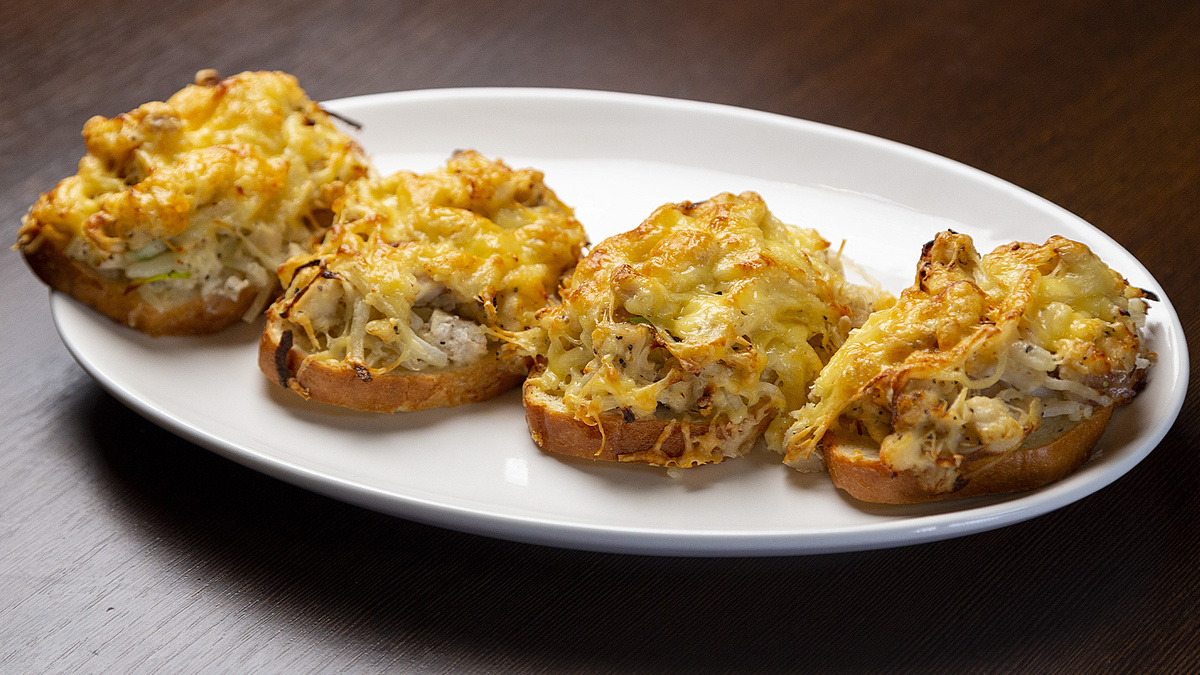 На готовые тосты щедро намазать приготовленный паштет и посыпать мелко нарезанным зелёным луком. Это блюдо, требующее всего 10 минут времени, идеально дополнит ваши любимые напитки.