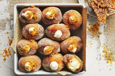 Для начинки нужно сделать небольшое отверстие в каждом пончике и аккуратно заполнить их заварным кремом с использованием кондитерского мешка. Не забудьте дополнительно посыпать сахаром сверху.