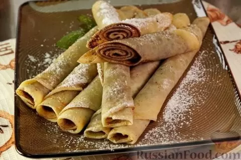 - Кофейные блинчики – это не просто блинчики, а утренний глоток бодрости. Тонкие блинчики готовятся на основе молока и минеральной воды. Их посыпают ароматной смесью сахарной пудры и кофе, сворачиваются трубочками и посыпаются сахаром. Идеальный старт для любого дня!