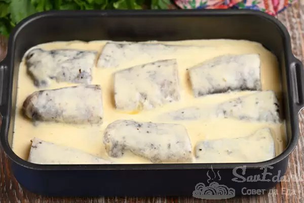 В глубокой миске разбейте пять куриных яиц, добавьте четыре столовые ложки сметаны, немного соли и перца. Хорошо перемешайте и залейте этой смесью рыбу. Поставьте форму в предварительно разогретую духовку при 180 градусах на 35-40 минут. Когда рыба зарумянится, её можно доставать. Аромат будет невероятным, а яичная масса придаст рыбе особую нежность и сочность.