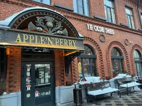 Ye Olde Shed представляет собой маленький английский паб с обилием сидра — как в бутылках, так и на кране. Здесь нет традиционных столиков, но вместо них высокие барные стойки и общие столы в духе пабной культуры.