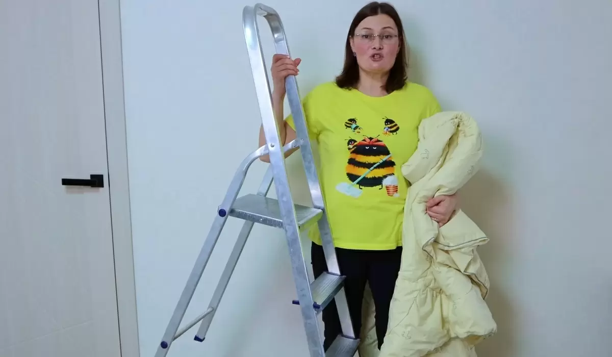 Лестница высотой около 1,5 метра идеально вписывается в любую ванную. Просто повесьте на нее одеяло, чтобы обеспечить свободный доступ воздуха. Это ускорит процесс сушки и позволит влаге стечь.