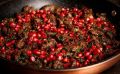 Дальше, на разогретой сковороде с растительным маслом, обжарьте печень, добавляя лук и сладкий перец, до появления аппетитной корочки. Позднее введите специи и влейте вино. Потратьте немного времени, чтобы соус загустел, перед подачей добавьте свежезаваренный чеснок и зелень. Столовая шедевр готова, и подавать его лучше всего с зернами граната — они добавят яркости и свежести вашему блюду.