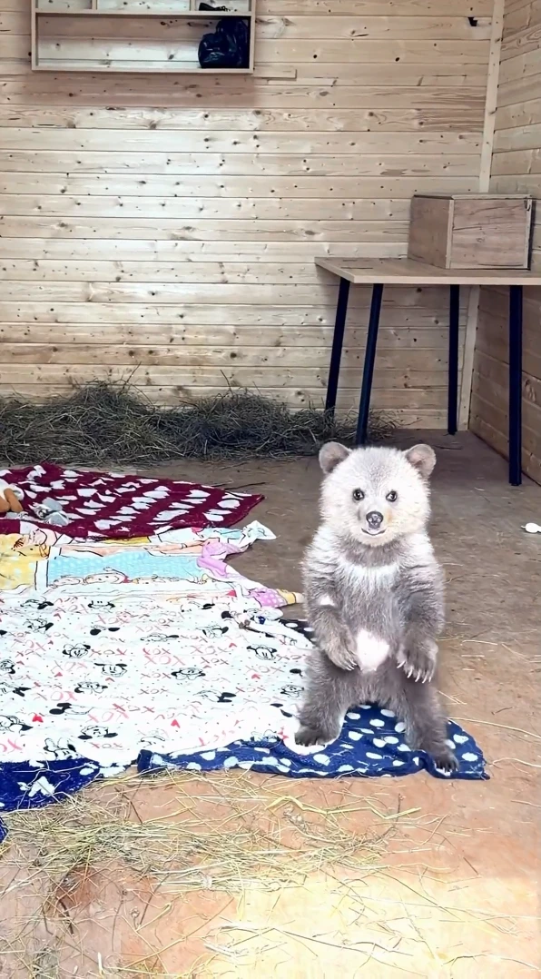 Истощённую, покусанную клещами и заражённую глистами медведицу доставили к специалистам. Дынька быстро привязалась к людям, да так сильно, что начинала плакать, когда рядом не было человека. Работникам центра приходилось сидеть с ней сутками.