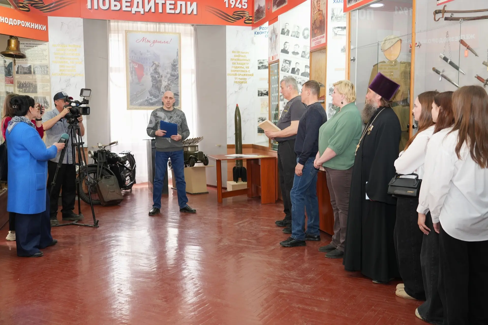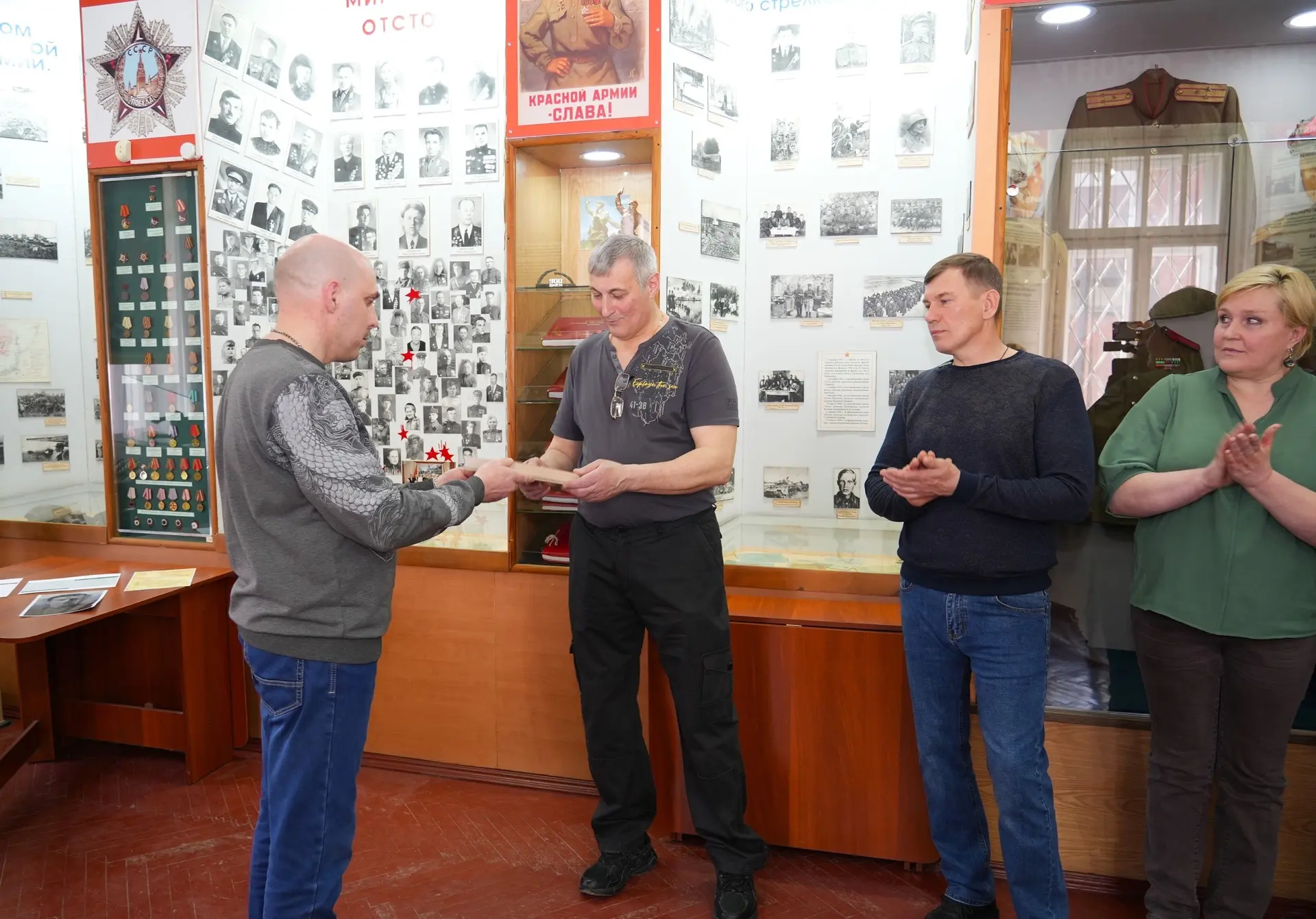 Накануне празднования Дня Великой Победы в историческом отделе Бийского краеведческого музея состоялось торжественное и значимое событие. По просьбе Николая Владимировича Чайки, командира краевого поискового отряда «Алтай» и заведующего Табунским краеведческим музеем, сотрудники музея передали внукам участника Великой Отечественной войны — Андрею и Вячеславу Грязевым — смертный медальон их деда Грязева Никифора Тихоновича.