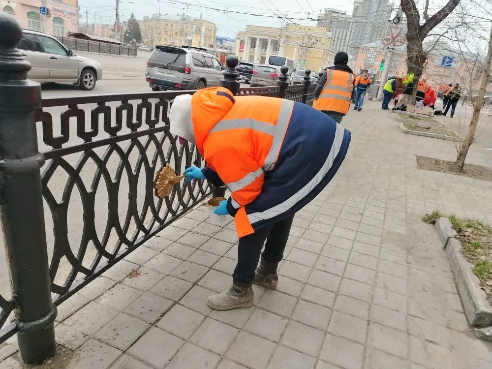 В период месячника санитарной очистки дорожная служба Барнаула традиционно приводит в порядок остановочные павильоны и ограждения.