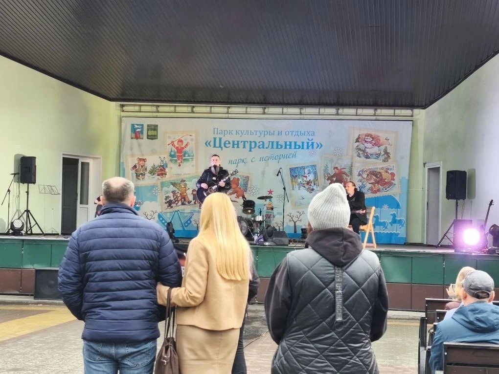 Рок-концерт в "Центральном" парке после субботника. Кто-то пританцовывает, кто-то слушает и даже подпевает.