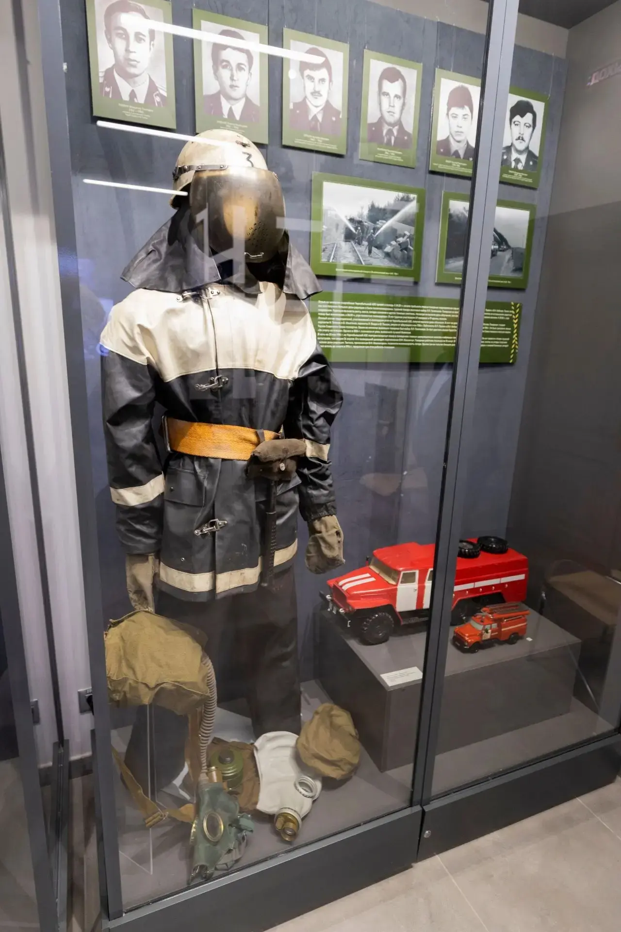 Среди представленных экспонатов - форма пожарного 80-х годов XX века, модели автомобилей, униформа медицинского работника. Особое внимание гостей привлекли макет энергоблока Чернобыльской АЭС, архивные фотографии и документы, личные вещи ликвидаторов – специальная одежда. Отдельный раздел посвящен разрушительным последствиям аварии для экологии и здоровья людей.