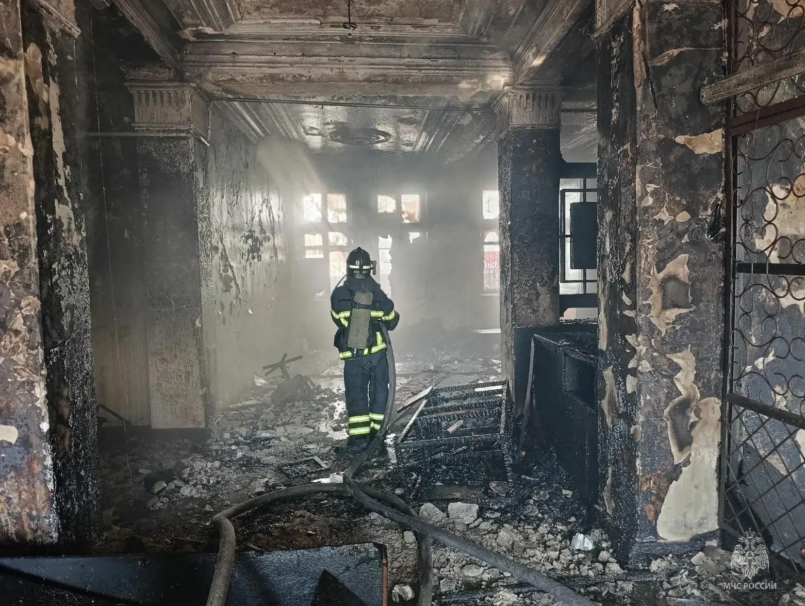 В Барнауле на проспекте Ленина горело заброшенное историческое здание