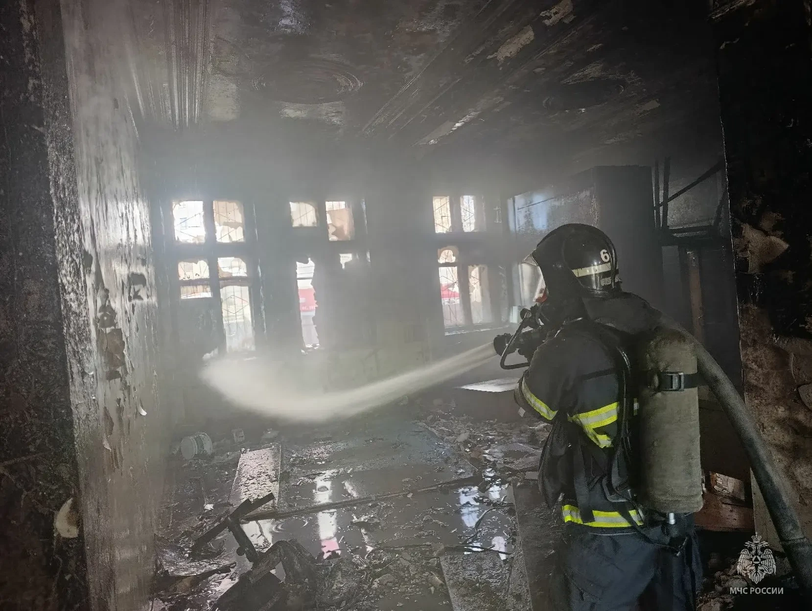 Как сообщили в ГУ МЧС России по Алтайскому краю, возгорание ликвидировали на площади около 50 квадратных метров: огонь охватил пол и стены на первом этаже. К тушению привлекли 30 сотрудников и восемь единиц техники. Пострадавших, по предварительным данным, нет.