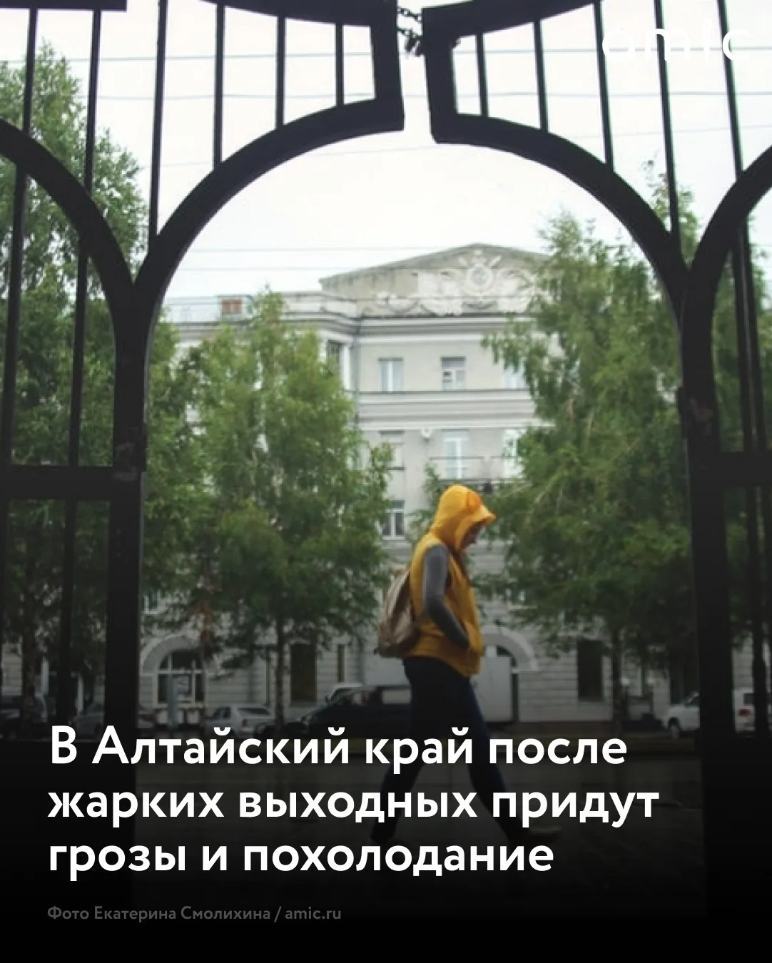 В краевой столице та же история: в воскресенье — до +27 градусов, а в понедельник — резкое падение температуры до +14…+16 и кратковременный дождь.