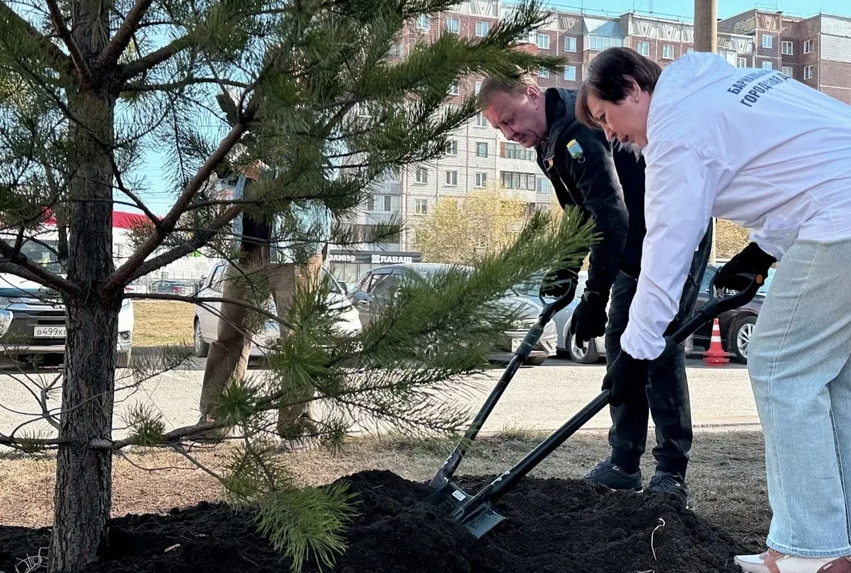 Вместе с главой города Вячеславом Франком в акции по посадке деревьев приняли участие: