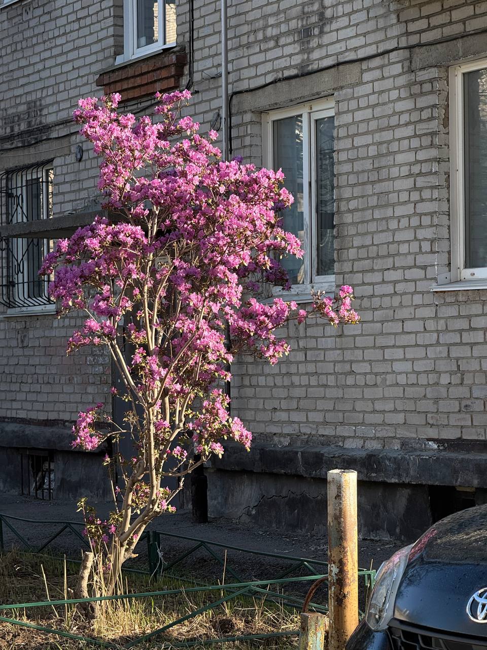 В одном из дворов Барнаула растет маральник (а, если правильно, то рододендрон Ледебура).Не фестиваль цветения маральника, конечно, но тоже очень красивоФото: Амик