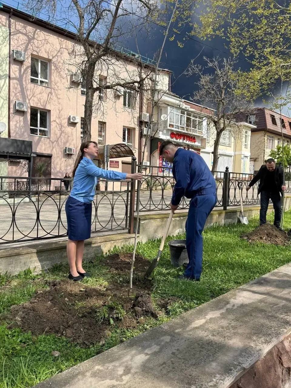 Прокуратура Краснодарского края опубликовала фотоотчет, где сотрудники ведомства сажают деревья на фоне огромного столба черного дыма от горящего НПЗ. Фото быстро разлетелись по интернету, пост с ними из своих соцсетей прокуратура удалила.