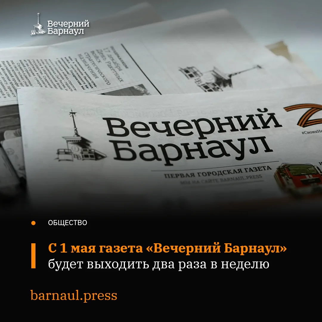 Газета будет печататься два раза в неделю вместо четырёх: во вторник — в формате А2, в пятницу — в формате А3. Читатели смогут более оперативно узнавать информацию о жизни города в виде статей, репортажей, интервью на интернет-сайте «Вечернего Барнаула», в наших социальных сетях и мессенджерах.
