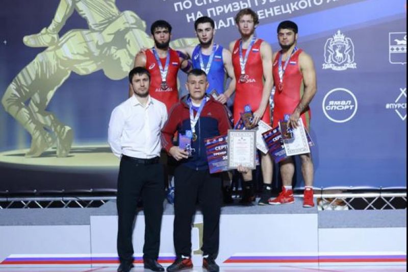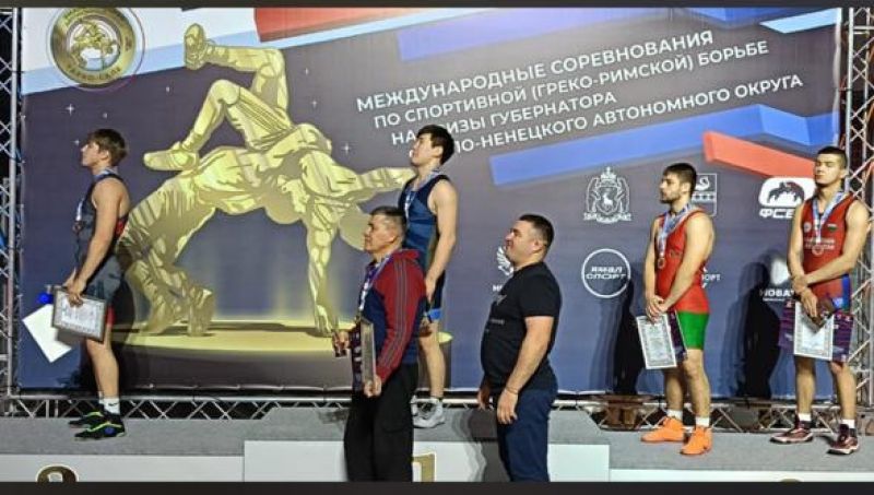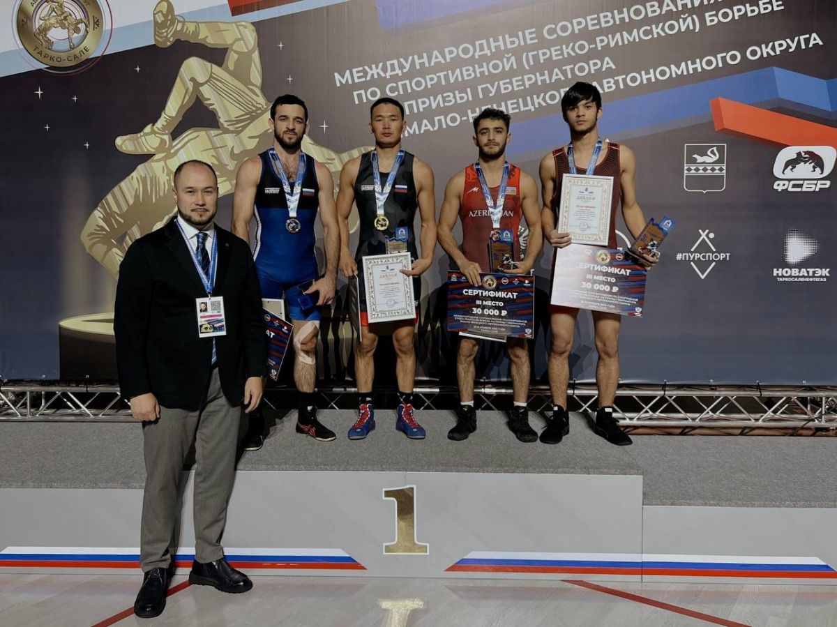 Юрий Тапаа — победитель, Шохин Холназаров и Иван Чебышев — серебряные призёры международного турнира по греко-римской борьбе на призы губернатора ЯНАО