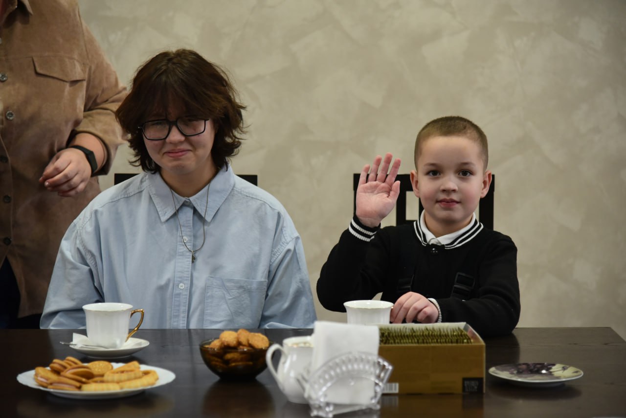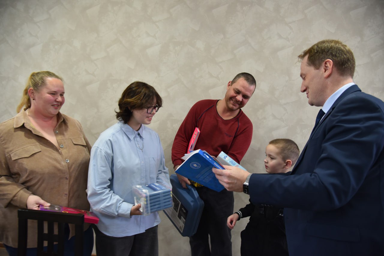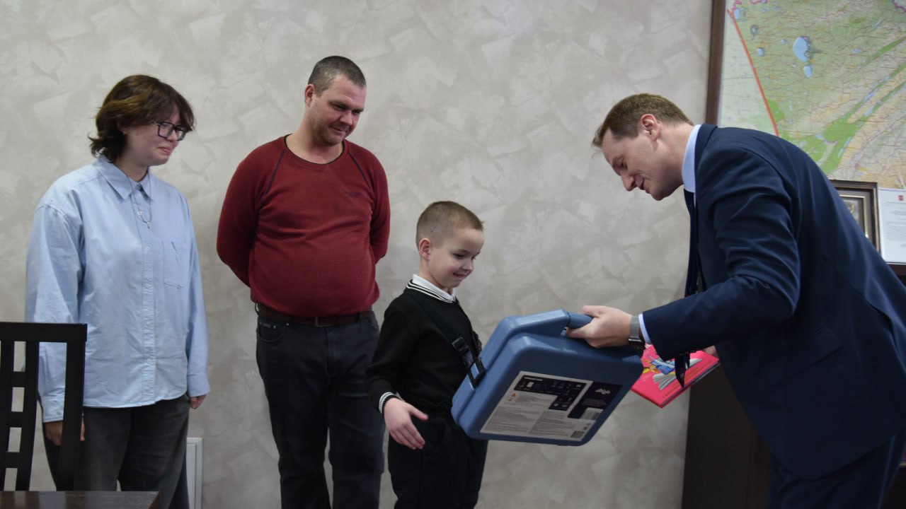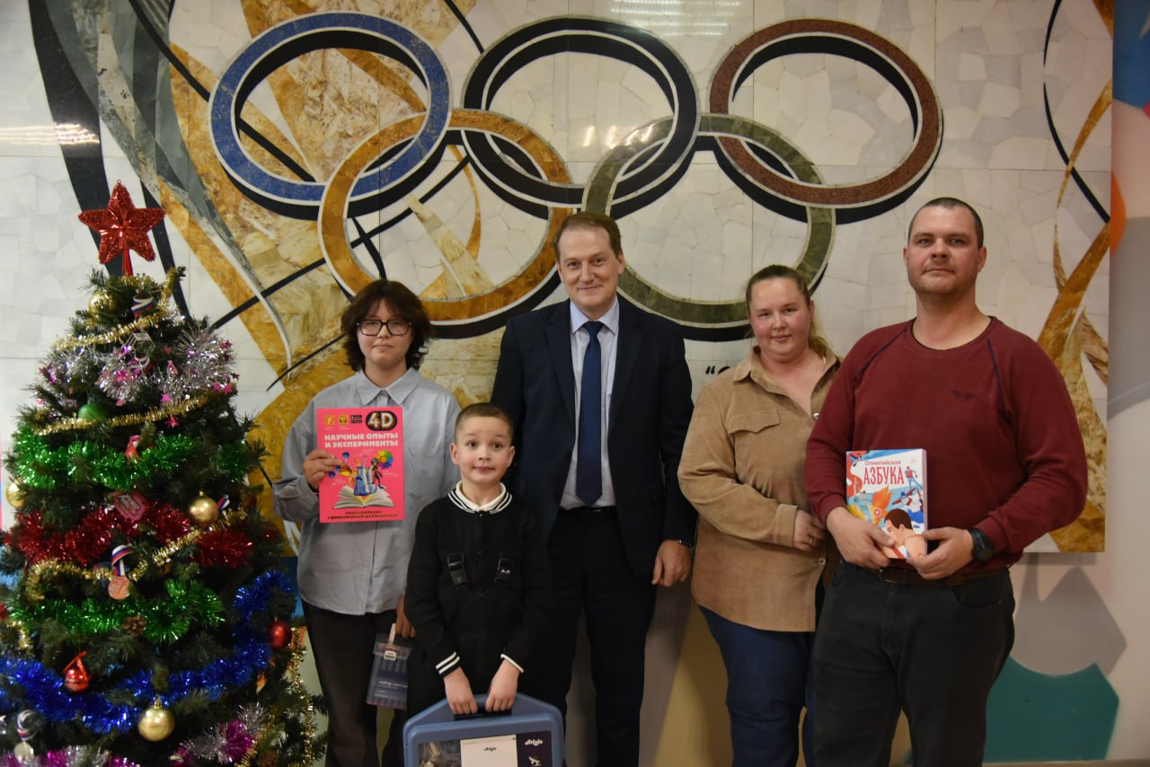 Арсений вместе со своей семьёй сегодня приехал в гости в Министерство спорта региона. Парень увлекается природоведением, подарок соответствует интересам — настоящий микроскоп и энциклопедия. Его сестра любит творчество, получила набор для рисование. Не обошлось без тематического спортивного подарка — Олимпийская азбука, чтобы спорт стал еще понятнее и доступнее. А во время встречи семья узнала больше о возможностях занятий физической культурой и спортом в крае.