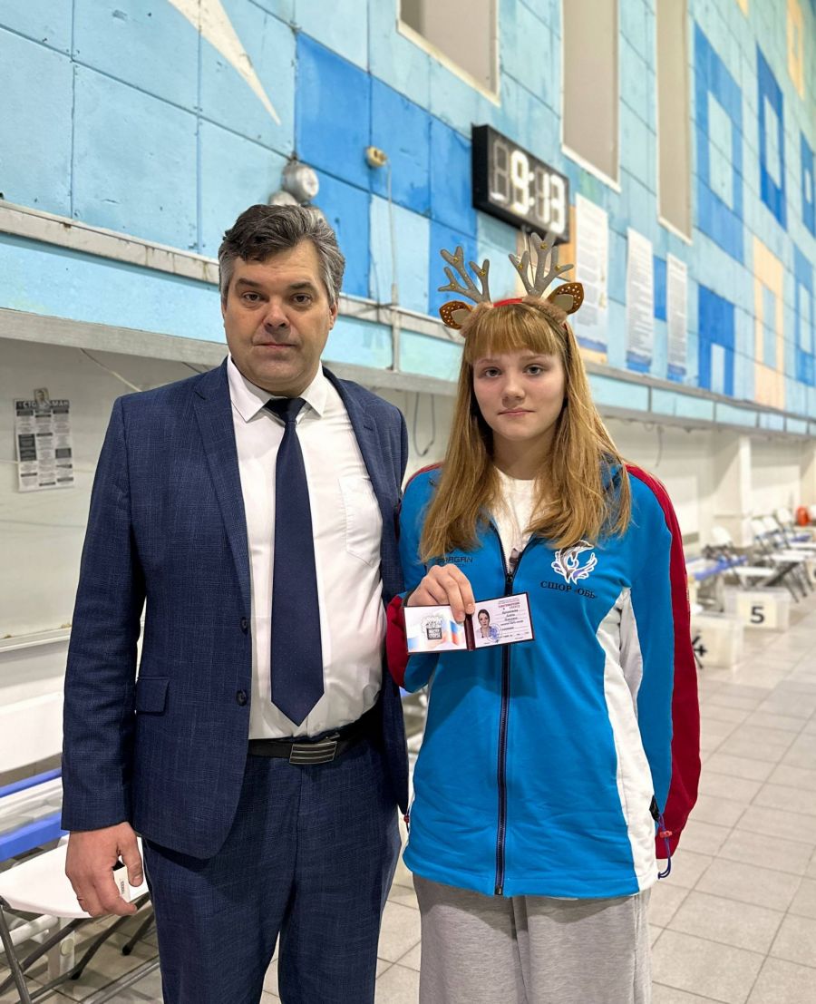 В первый соревновательный день состоялось вручение удостоверения и значка «Мастер спорта России» Алине Артамоновой, воспитаннице тренеров-преподавателей Сергея Заболотнова и Ирины Финк. Знак отличия вручил директор СШОР «Обь» Александр Звягинцев.