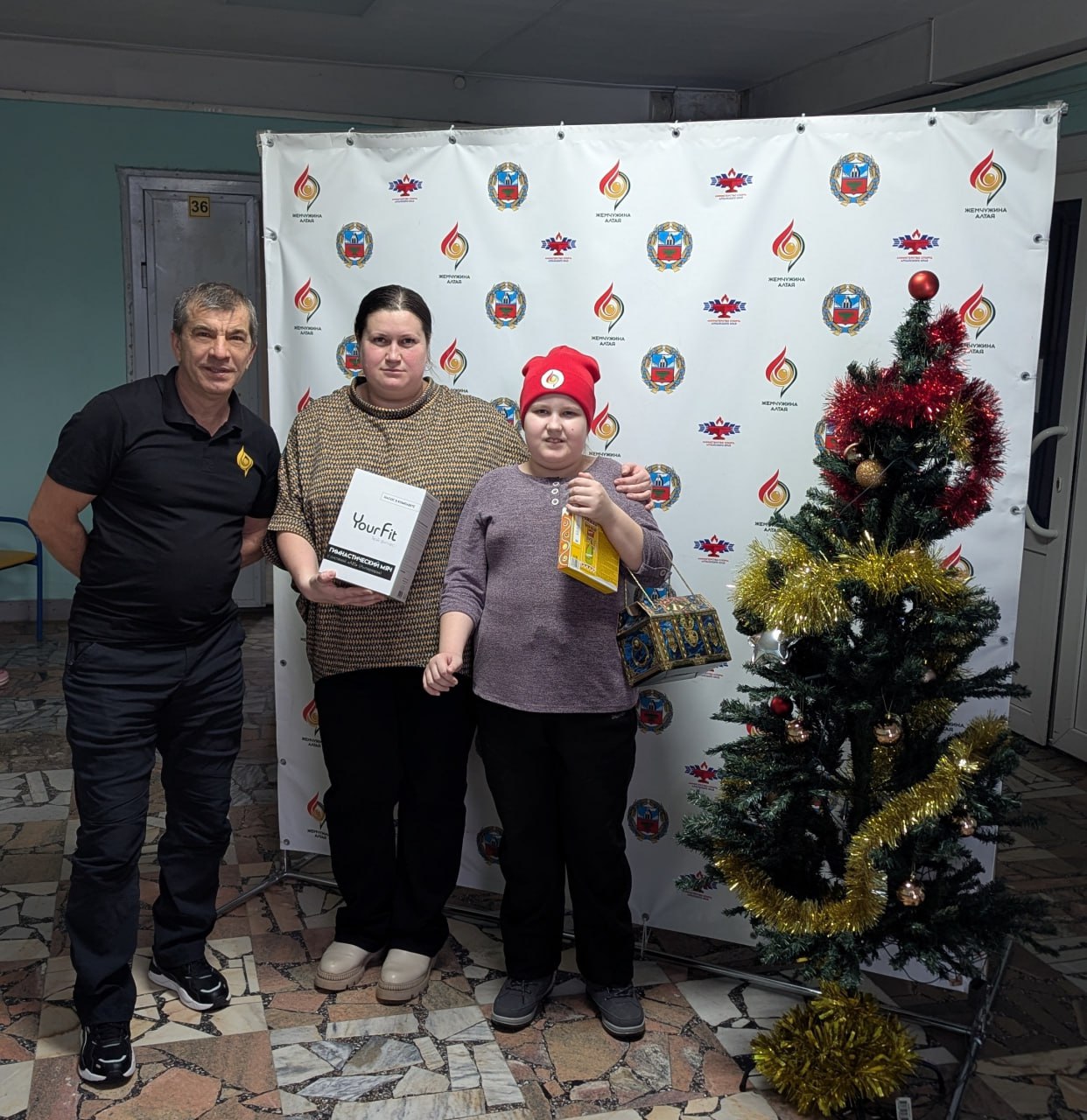 Директор СШ «Жемчужина Алтая» Андрей Пудовкин вручил 9-летней Варваре гимнастический фитбол прямо в зале гимнастики спортивной школы. Также в подарок она получила новогодние сладости и фирменную спортивную шапочку, которая ей сразу очень понравилась.