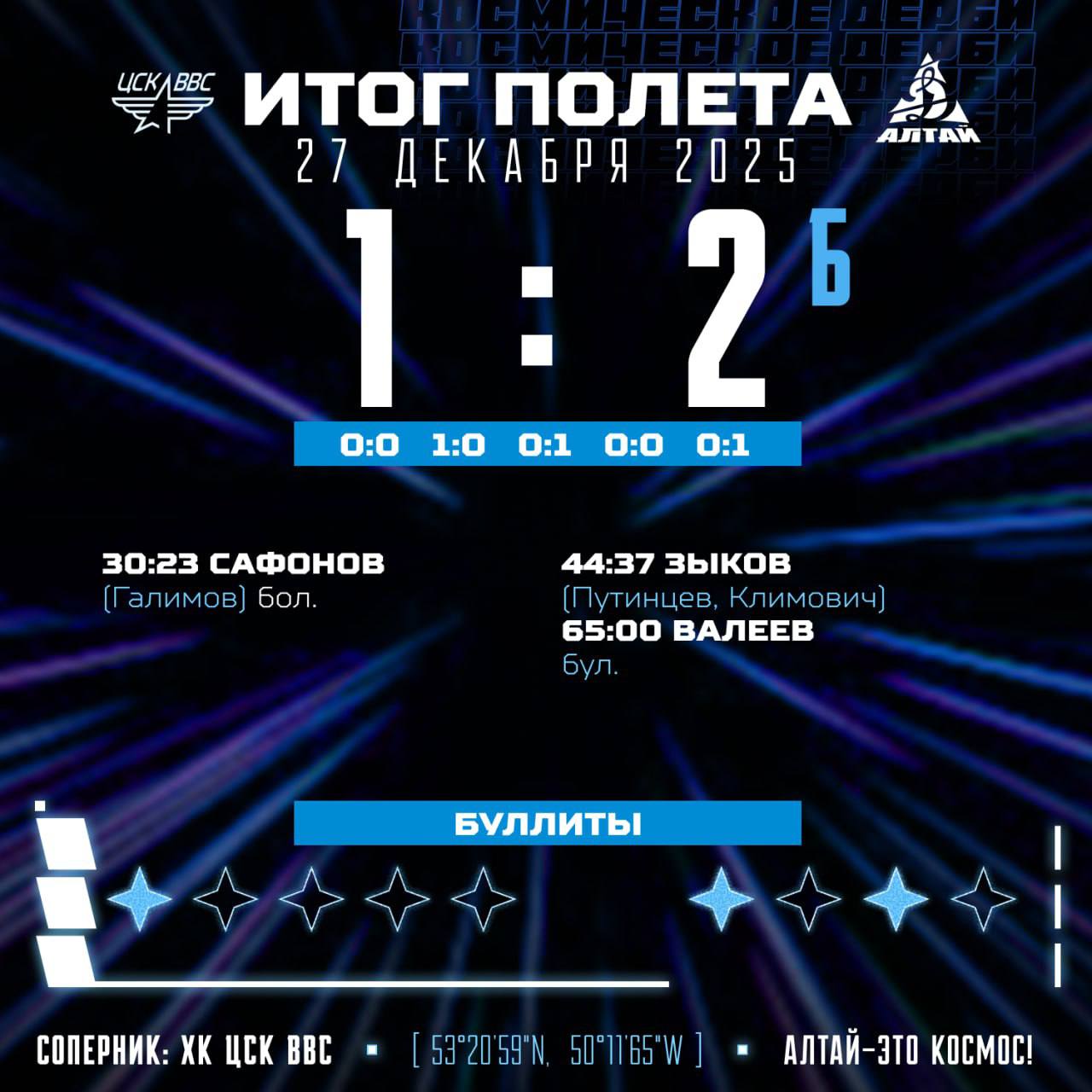 Хоккеисты «Динамо-Алтай» в выездном матче с самарским ЦСК ВВС одержали победу по буллитам — 1:2