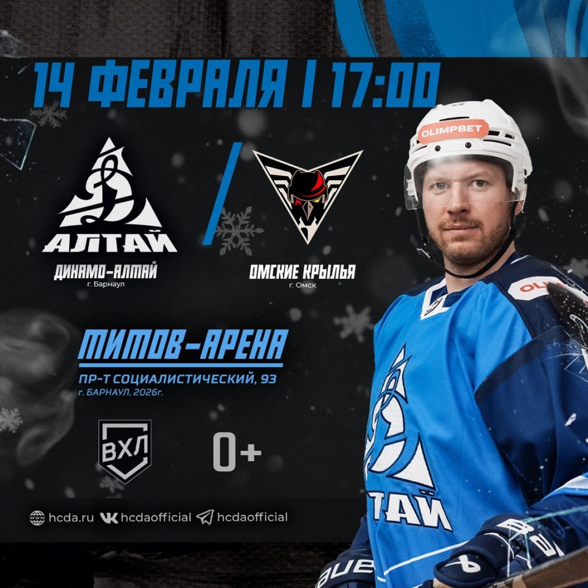 Поединком против «Омских Крыльев» ХК «Динамо-Алтай» сегодня открывают предпоследнюю домашнюю серию матчей «регулярки» ВХЛ сезона 2025/2026